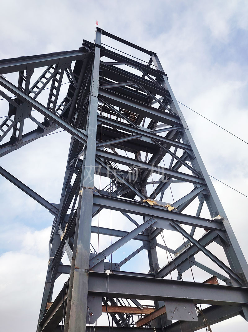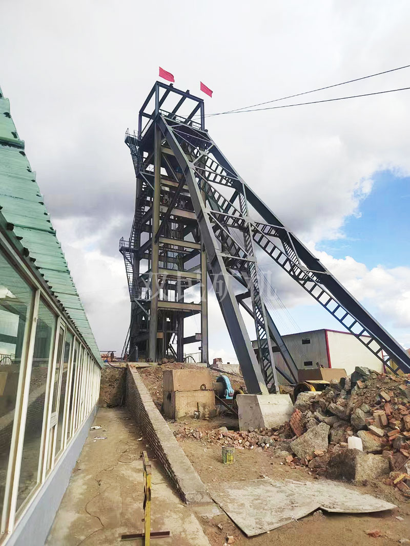 斜撐式永久井架主要特征和優(yōu)點: 單斜撐式井架是隨著落地式多繩地上計技術發(fā)展而產(chǎn)生的,具有造型獨特,結構簡單,受力合理,工程量少,經(jīng)濟實用,技術進步的特點。