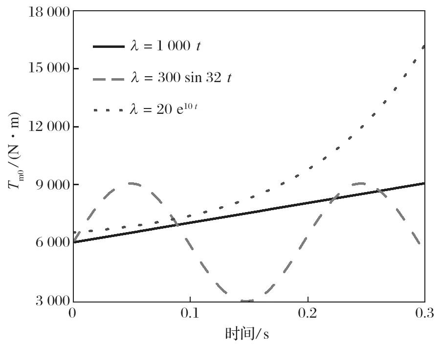 式中:Tm0 為輸出轉矩,N·m;Tm 為穩定輸出轉矩,N·m;Km0 為剛度系數;λ 為波動系數。